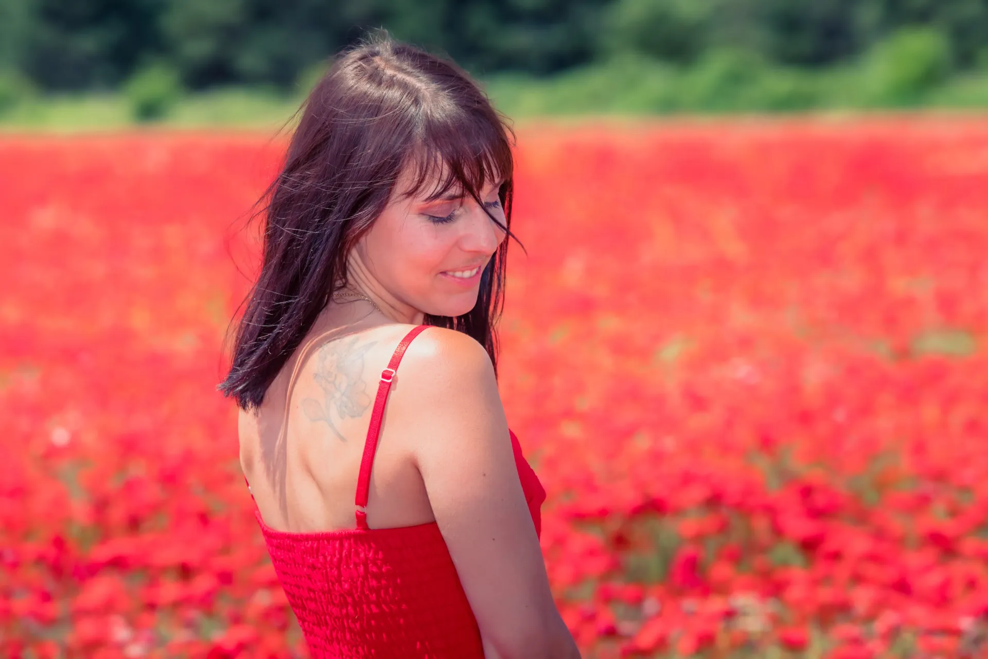 Une série où Estelle se fond dans le rouge vif d'un champ de coquelicots. Ces images célèbrent la vivacité et la beauté de la nature, avec Estelle émergeant tel un tableau vivant au milieu des fleurs écarlates. La série met en lumière une harmonie visuelle unique, où la douceur d'Estelle contraste avec la passion et l'intensité des coquelicots, créant une symphonie de couleurs et d'émotions.