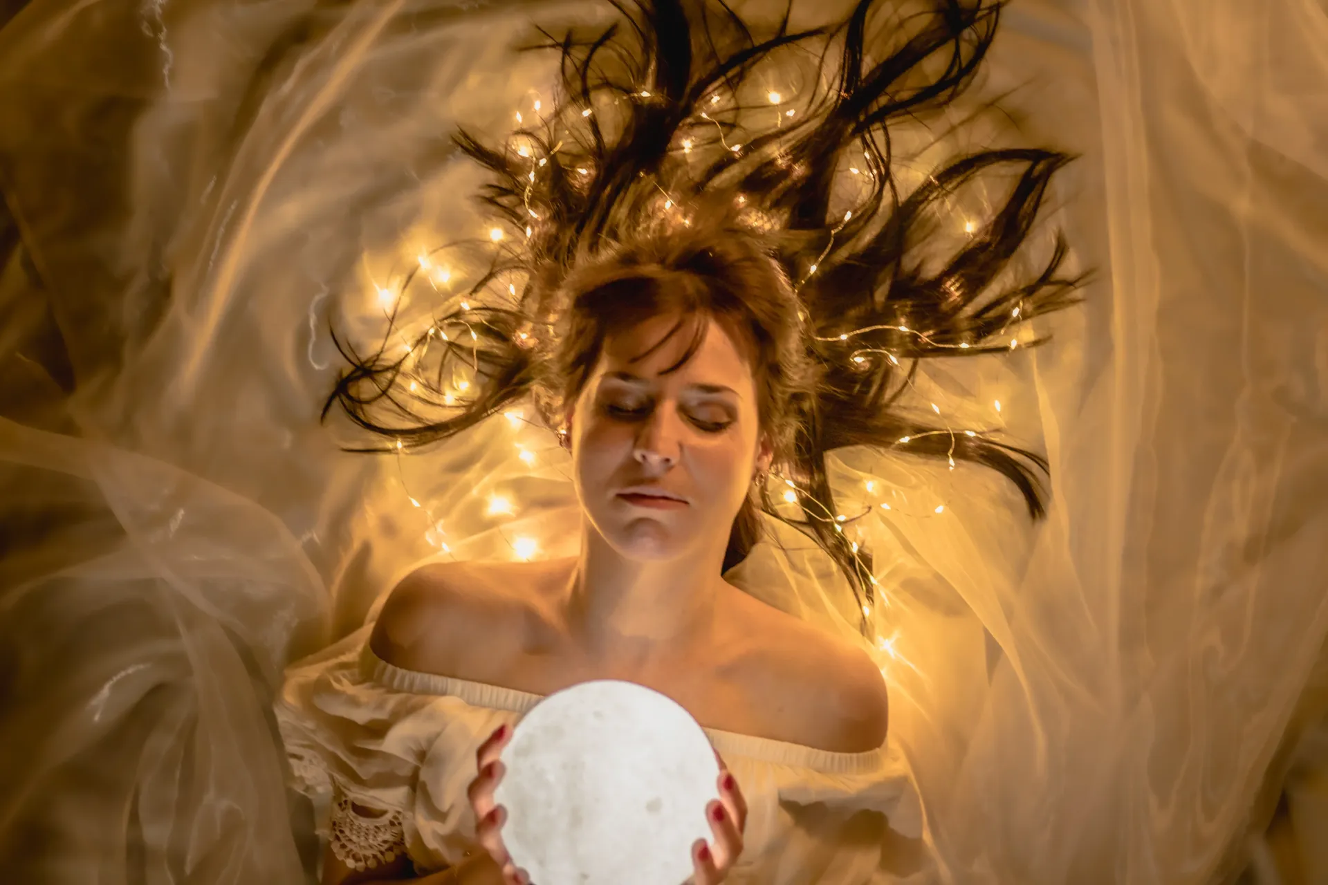 Plongez dans 'Féerie Nocturne', une série de photos capturant la magie et le mystère avec Estelle tenant une lune éclairée. Ces images, empreintes de féerie, marient la poésie du clair de lune à la grâce et à l'élégance d'Estelle, créant un univers enchanté où la lumière et la fantaisie se rencontrent dans un ballet visuel envoûtant.